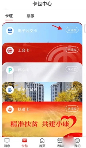 3、前往卡包中心,点击下方的电子公交卡,即可进入。