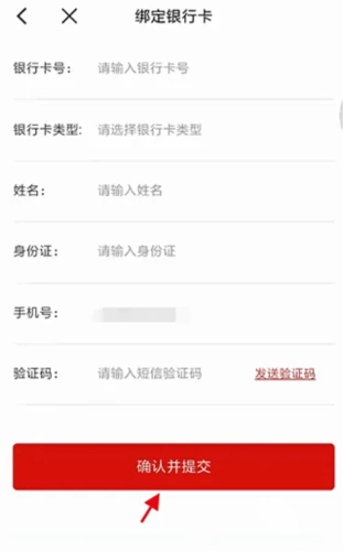 5、进入银行卡绑定页面,填写相关信息后,点击确认并提交申请以开通服务。
