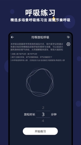 可自行设置呼吸训练的时间,以便能在限定的时间专注于练习呼吸;