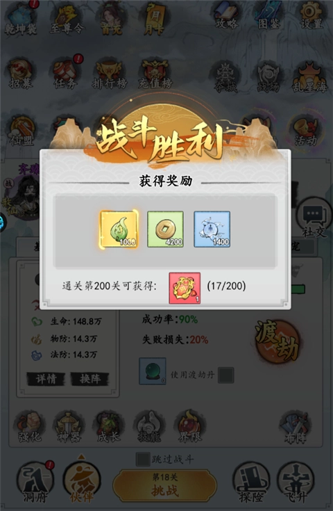 1、每一次提升境界需要消耗相应的修为,玩家可以通过挑战关卡来获得。