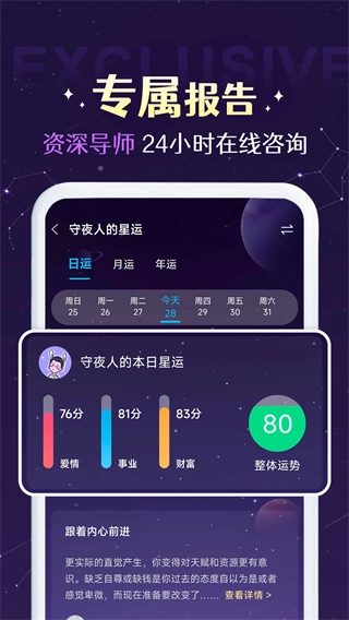 3. 专属报告可助力用户知悉自身详尽的运势状况,并给出趋吉避凶的办法。