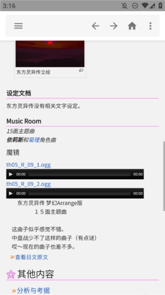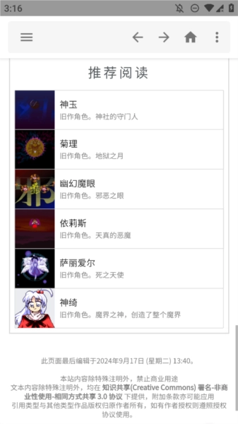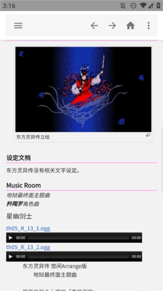 2. 维持与THBWiki的数据同步状态,让用户获取到的东方Project资料始终为最新版本,任何更新内容都不会错过。
