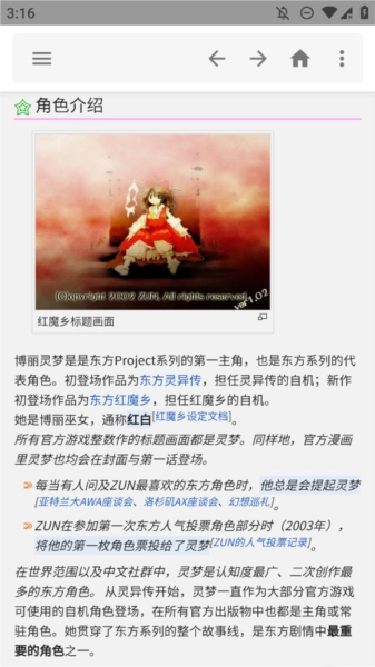 1. 聚焦东方Project资料:核心亮点是围绕东方Project系列展开,对THBWiki丰富且专业的资料进行整合,无论是设定方面,还是二次创作领域,都全面覆盖,充分满足爱好者从初步认知到深入考据等多样需求。