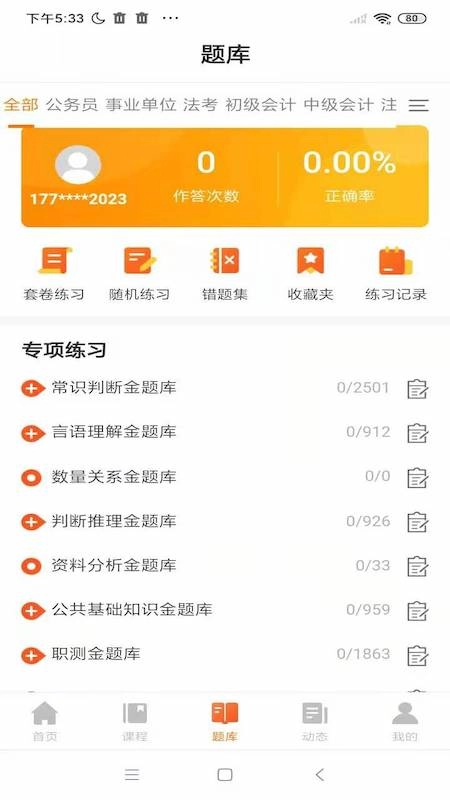 3、采用课程教学结合题库的形式,可满足学员的学习需求。