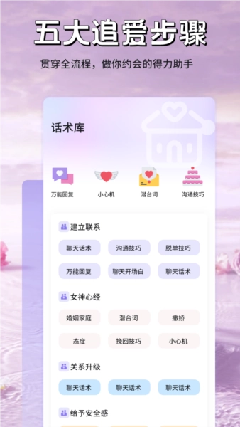 3. **情话宝典**:精心梳理了适用于不同情境的恋爱甜言蜜语,助力用户在各类场景中都能说出恰如其分的情话,让彼此的交流更具深度。