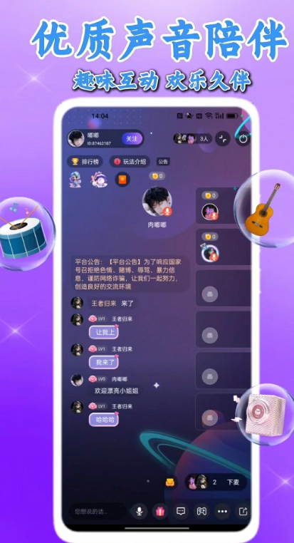 1. 平台允许用户自主进入他人创建的语音房间,且每个语音房间都具备清晰的主题指引。