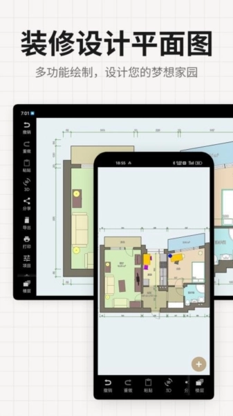 装修设计平面图是深圳市马步多多科技有限公司推出的一款移动设计软件,通过软件用户可以随时随地进行平面设计,及时处理突然的需求改变,免去了绘画装备的限制。软件功能齐全,无论你要绘画门窗、家具、电器等,装修设计平面图软件都能轻松实现,还支持PDF、dxf、SVG等格式导出,满足日常使用需求。软件还可以帮助用户来以3D形式查看它们,添加家具来设计房子的内部,更好的展示装修效果。有需要的朋友不妨来试试吧!