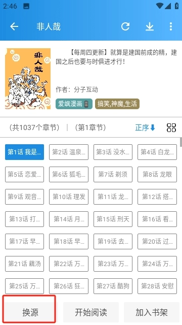 1. 开启刺桐漫画App,要是在阅读期间察觉到漫画资源失效,能够点击下方的换源。