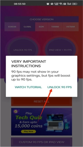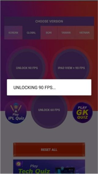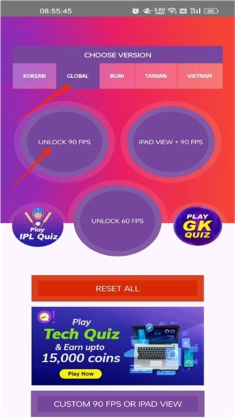 1. 开启软件,选中全局模式GLOBAL,接着点击解锁90帧模式。