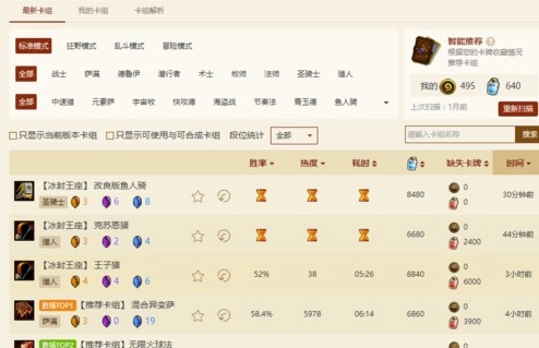 4、点开卡组,就能看到其他人使用的那些较为流行、胜率颇高的卡组。