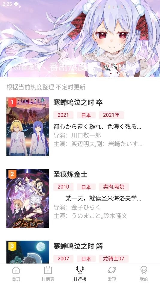 1、在这里,我们首先能看到追番周期表,通过它能知晓近期有哪些好看的番剧。