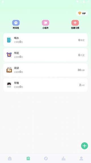 2、在第二个页面,你能够记录自己专注于做某件事的情况,并且还能自主创建各种不同的习惯。