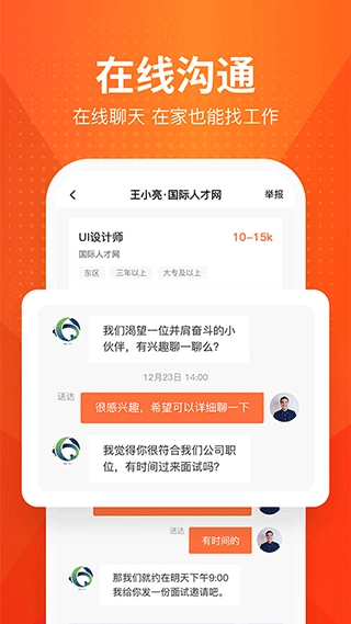 3、在线沟通,在线聊天,在家也能找工作