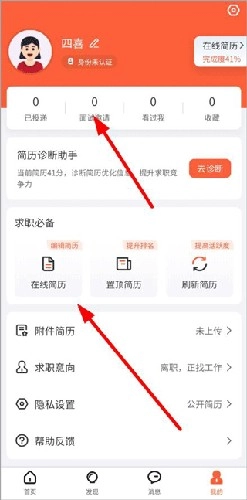 5、我的页面,拥有查看面试邀请、修改在线简历、修改求职意向等功能。