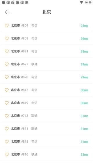 3、接下来选择一个ip,进入后就可以看到每个城市具体的线路信号状况和编号,选择一个信号较好的点击即可。