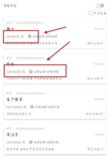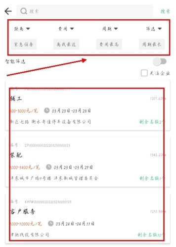 3、按地区搜索任务:通过设置城市和地区信息,根据提取的内容搜索任务。