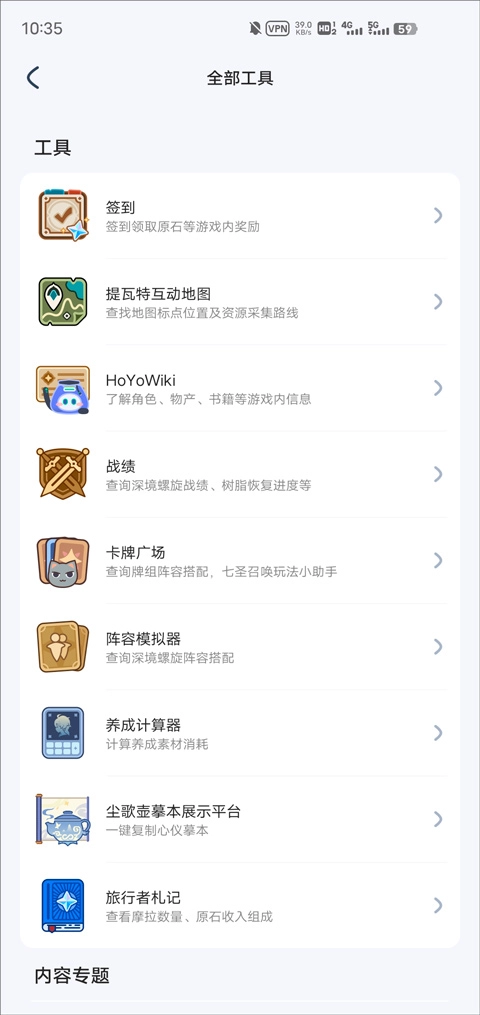 5、此外,软件内还包含诸多实用的游戏工具,像签到、提瓦特互动地图、养成计算器等等。