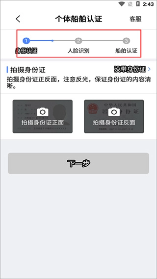 2、进入软件平台后,个体船舶需完成个人实名认证,方可使用。