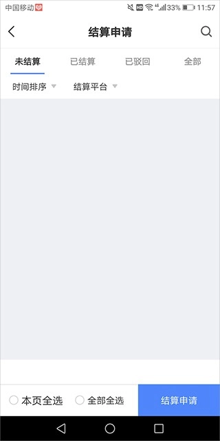 3、完成签收后,回到工作台,点击“结算申请”,勾选相关单子,再次点击“结算申请”。