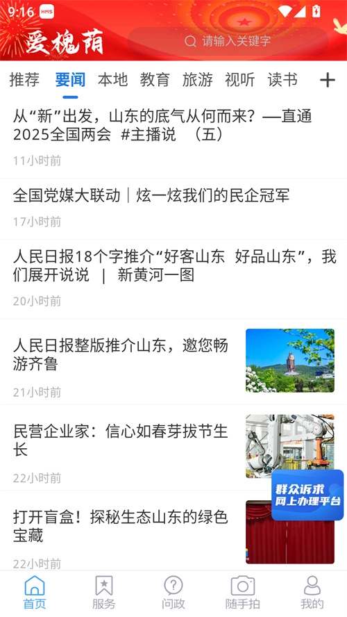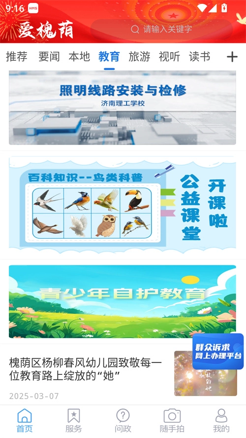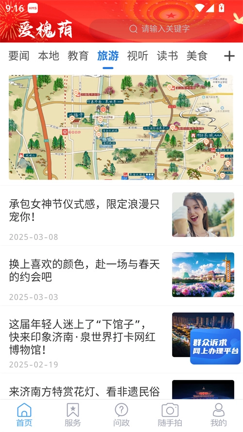 爱槐荫,专为槐荫区居民量身定制的新闻服务软件。在此,你不仅能浏览国家及槐荫本地的最新热点新闻,迅速知晓近期发生的重大事件,还能发现教育、旅游、新闻、视听、读书等丰富多样的板块。倘若你有特定兴趣,只需搜索关键词,即可获取最新资讯。该软件界面简洁,操作便捷,感兴趣的朋友快来体验吧!