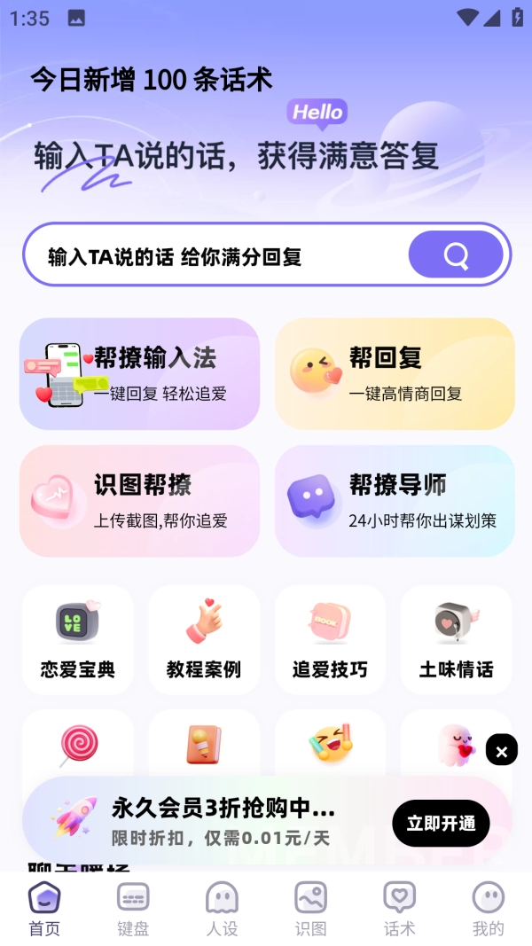 3、充实恋爱话术库:涵盖初识破冰、情感升温、挽回恋情等多个阶段场景,给出应对各类话题的聊天话术。