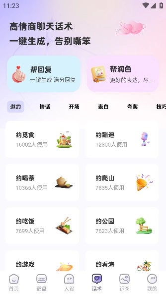 2、用户能够依据自身实际状况,挑选适宜的话术来展开聊天,从而轻松应对各类话题。