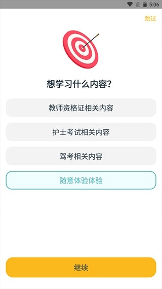 1、打开靠岸,根据自己的需求选择学习内容,也可以直接进行跳过;