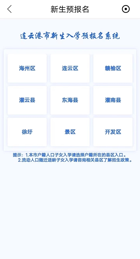 3、首先选择报名所在的地区,完成这一步后,即可着手进行信息填报。在填报过程中,学生、父母(或法定监护人)的户籍信息以及房产信息等,都能够在户口簿、房产证或者不动产权证上获取。需要特别注意的是,在同一学段内,仅能报名一所学校,公办学校与民办学校不能同时兼报。另外,为防止出现网络拥堵的情况,建议大家错峰进行信息填报。