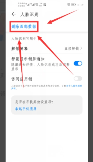 4、轻点“删除面部数据”;