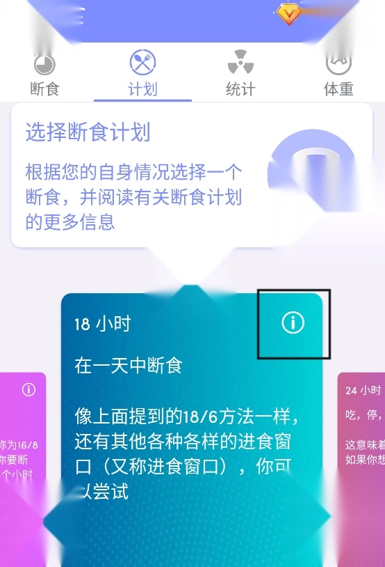 1. 打开软件后,第一步是在计划栏挑选一个契合自身身体状况的断食计划。这里有12小时、16小时等各类科学计划可供选择,你也能依据自身实际情况定制专属计划。点击各计划右上角的感叹号图标,就能了解该断食计划的科学阐释。