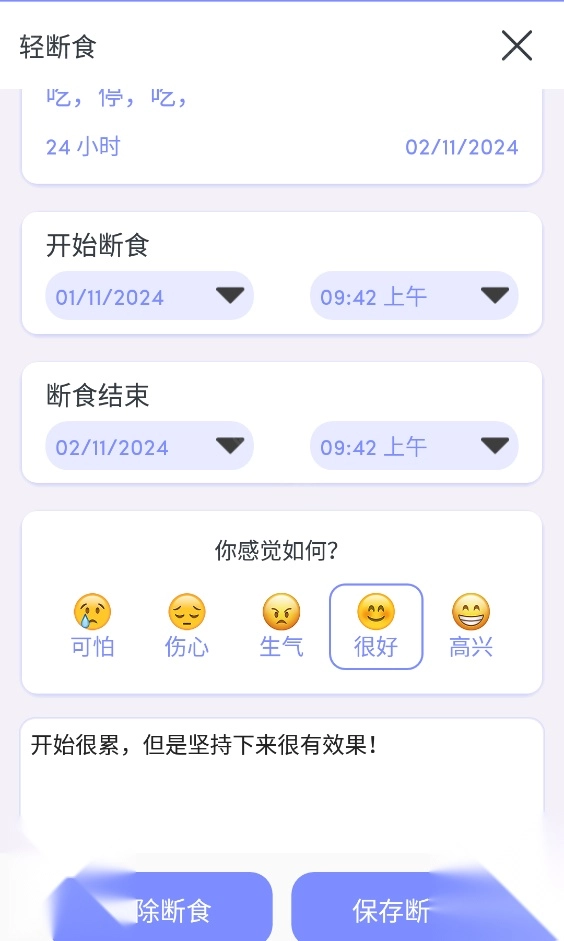 3、完成所选的断食计划后,不妨记录一下断食期间的感受,或是下次断食需留意的要点。