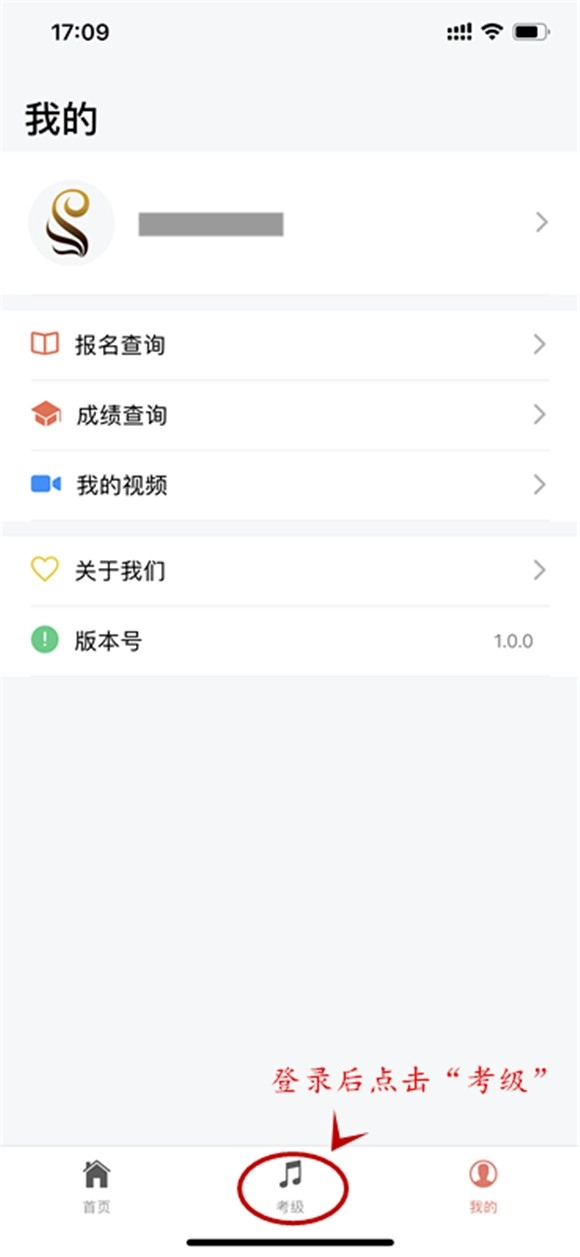4、登录成功后,点击下方的“考级”选项。