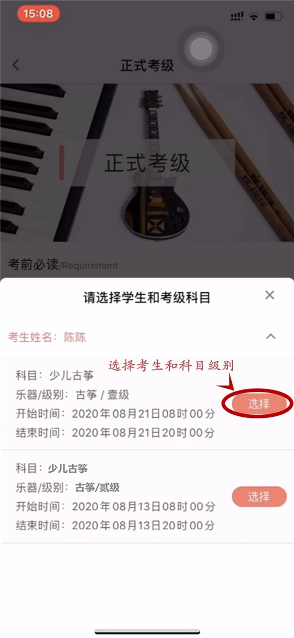 9、请慎重选择考级曲目,一旦选择成功,便不可更改。