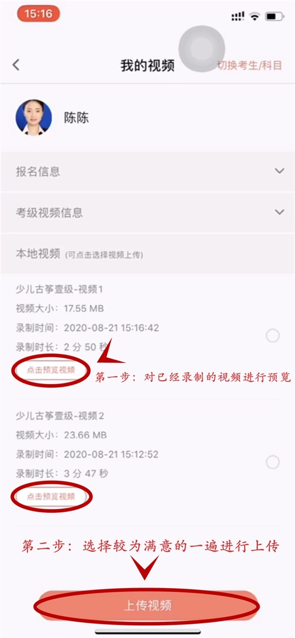 12、当视频上传完毕,本次考级即宣告完成。