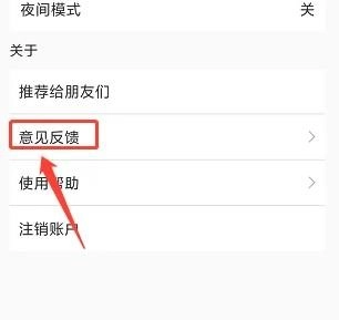 3. 打开设置窗口,点击【意见反馈】这一选项。