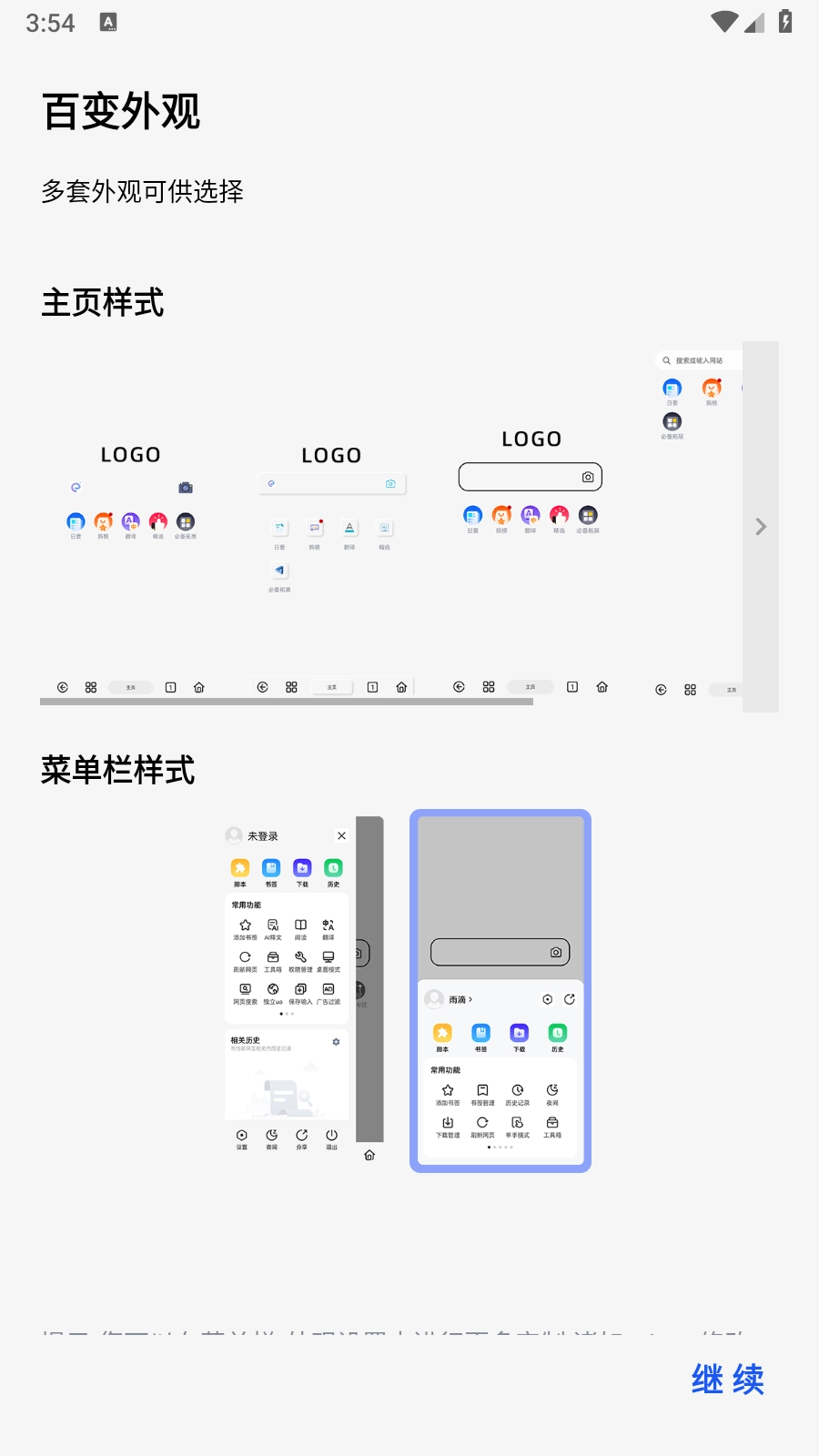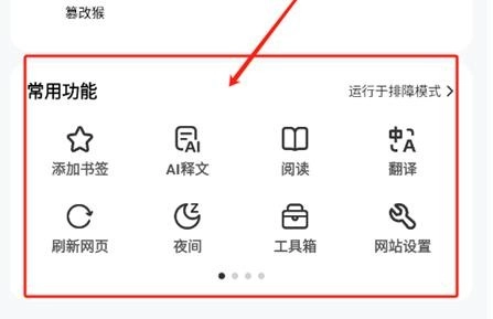 3. 轻点下方菜单栏图标,这里还为大家准备了无痕浏览、网页搜索、语音助手等实用功能。