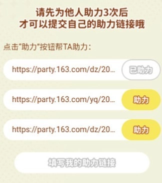 2、需先帮他人助力三次,之后方可提交自己的助力链接。