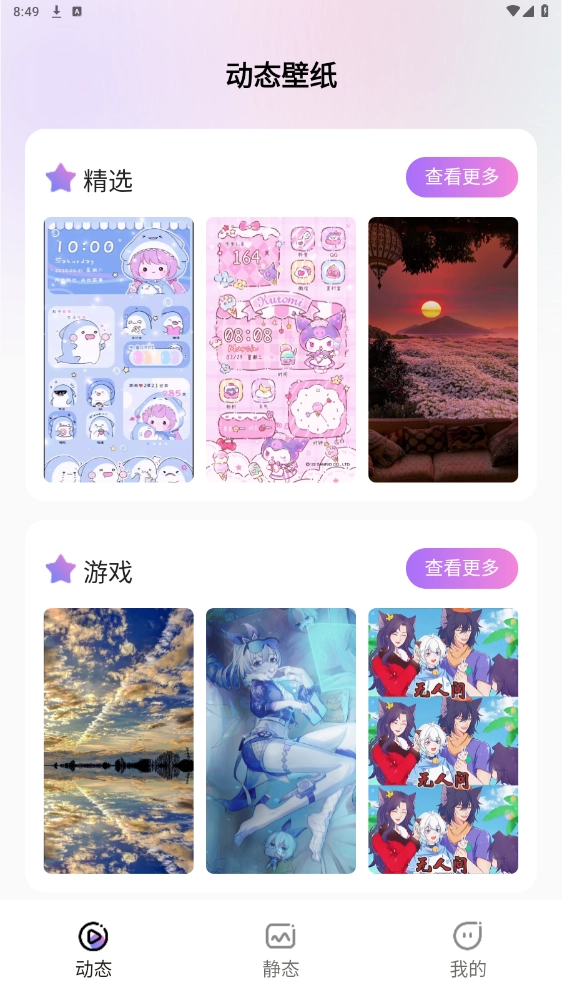 赋予手机屏幕全新的生机与活力。静态壁纸板块涵盖上新、唯美、卡通以及星空等多种分类。