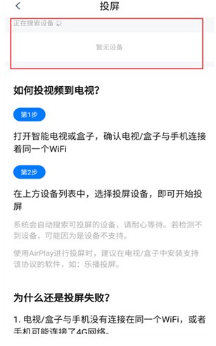 3、TV图标代表的就是投屏功能,点击该图标即可进入投屏功能。在投屏界面,系统会自动搜索处于同一wifi网络下的电视设备,一旦搜索到,直接连接就能实现投屏。