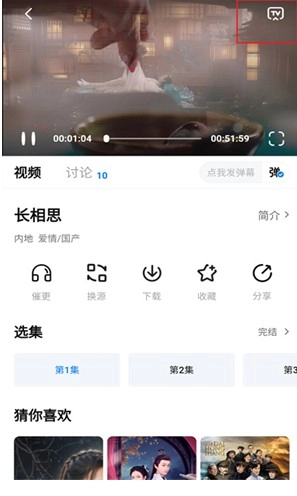 2. 在播放页面的右上角,能看到带有【TV】字样的图标,点击该图标即可进入。
