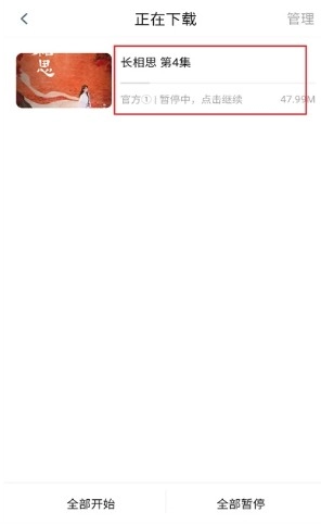 5、在该功能界面,能看到正在播放的剧集。若不想继续观看,点击剧集即可暂停。