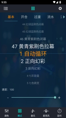 1、幻彩宝莲灯最新版,除了基础调光功能,该软件还具备大量内建的色彩转换模式以及场景设定。使用者能够依据自身喜好或特定情形,选用诸如闪烁效果、色彩变化等多种效果,使光线随着使用者的情绪产生变化。