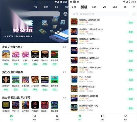 1、刚进入界面,您或许会眼前一亮,原因在于能看到大量平台游戏,诸如街机、FC、GBA、MD、3DS、WII、NGC、DC等等。