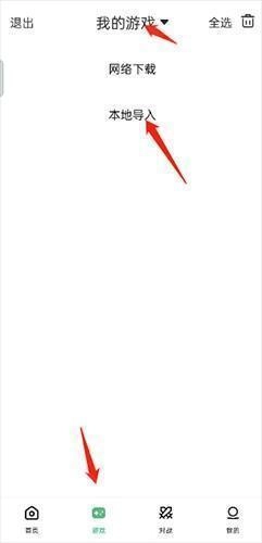 1. 开启软件,轻点“游戏”选项,接着轻点“我的游戏”选项,随后轻点“本地导入”选项。