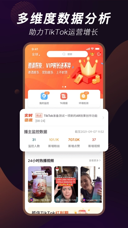 1.多tiktok账号监控。