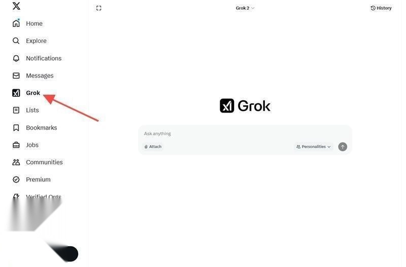 只需登录自己的X账号,即可看到左侧列表中的Grok选项。如果还没有账号,点击查看如何注册X账号或直接购买推特账号。