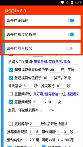 多宝抖自动抢福袋软件专为直播间自动抢福袋而设计,功能完备且全部免费,无需任何担忧。它支持各类型号的设备,兼容性极佳。用户只需一键点击,就能轻松完成抢福袋操作,高效又便捷,哪怕是毫无经验的新手也能迅速上手。