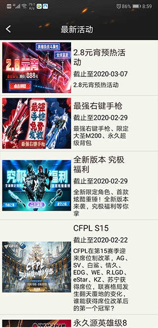 该软件独有活动道具定时抢领功能,助您获得限量武器,掌控全局。