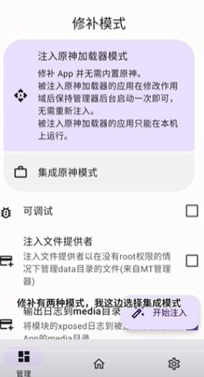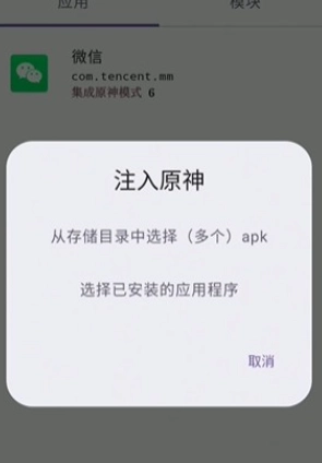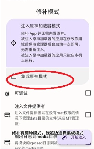 6. 挑选集成模式,随后进入并嵌入模块,进而开启注入操作。