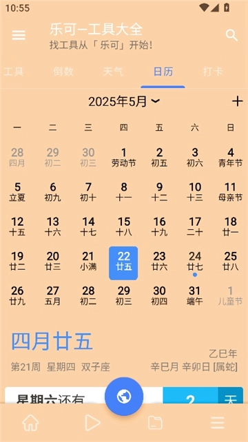 4、除具备浏览器功能外,还设有倒数、天气、日历、打卡等实用小工具。